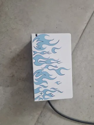 Complemento para Nintendo Switch con un diseño llamativo de llamas en tonos azules. - Diseño de llamas azules. - Color blanco. -Con cable HDMI incluido