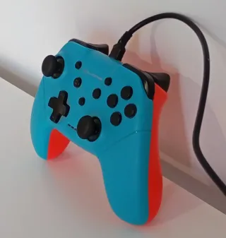 Mando alámbrico con un diseño ergonómico y llamativo en azul y naranja. Cable de 3m - Conexión por cable. - Sticks analógicos y cruceta. - Botones frontales y traseros.