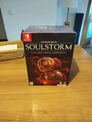 Edición coleccionista del videojuego Oddworld: Soulstorm para Nintendo Switch. Incluye varios elementos. - Caja de la edición coleccionista. - Juego de Nintendo Switch. - Figura. - Moneda - Pegatinas - juego esta precintado