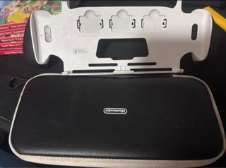 Funda protectora y soporte para Nintendo Switch. - Funda de color negro con logo de Nintendo. - Soporte de color blanco. -Juegos -2 mandos extras
