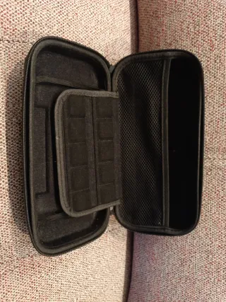Funda protectora para Nintendo Switch. Diseñada para mantener tu consola y accesorios seguros. - Compartimentos interiores para juegos. - Malla para accesorios. - Cierre de cremallera.