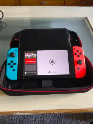 Consola Nintendo Switch en colores azul y rojo, lista para jugar con muchos títulos incluidos. Consola de 2017 M0D1F1C4BLE, no parcheada. INCLUYE: -Consola 2017 (serial bajo) - Joy-Cons en azul y rojo. - Cargador - Dock para TV - Cable HDMI - Correas para joycon - Micro sd 128 GB. Estado: la pantalla tiene cristal templado, y está en estado muy bueno como se ve en las fotos. La trasera si que tiene alguna marca y/o roce. No baneada, no control parental, funcionan todos los botones, no drift. LAS IMÁGENES FORMAN PARTE DE LA DESCRIPCIÓN. Solo se envía a perfiles con más de 1 años de antigüedad en Wallapop y con más de 15 reseñas