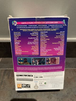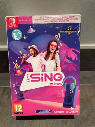 Juego de karaoke Let's Sing 2025 para Nintendo Switch, incluye paquete de 2 micrófonos. El juego está usado, pero los microfonos no se han usado. El código de descarga del pack de canciones "creo" que está usado, no cuentes con él. - Incluye 1 mes gratis de Pase VIP. - Más de 130 canciones adicionales.