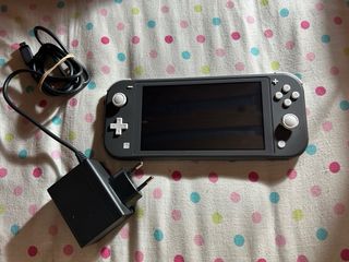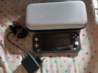 Consola Nintendo Switch Lite en color gris. Incluye funda protectora y cargador. - Funda de transporte rígida. - Cargador de pared.