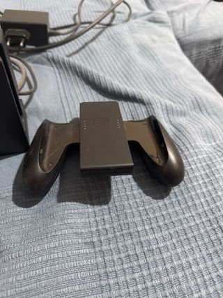 Consola Nintendo Switch en color gris. - Incluye Joy-Con izquierdo y derecho. - Incluye todo lo de la Nintendo, además de protector ya puesto; para conectar a la televisión y cargador (si hace falta se sube la foto, se encuentra en perfecto estado) -En una de las imágenes de puede ver que por una esquina del joy-con izquierdo está roto pero no impide jugar y disfrutala, por tanto, solo tiene ese defecto que se ve a simple vista. -No viene incluido ningún juego.