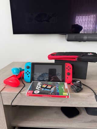 Consola Nintendo Switch con accesorios y juego. - Incluye mandos Joy-Con en azul y rojo. - Incluye el juego EA Sports FC 24, pokemon y Crash - Incluye cable de carga y hdmi originales - adaptador joy-con para televisión - funda de viaje - tarjera se de regalo Estado impecable, usada en contadas ocasiones