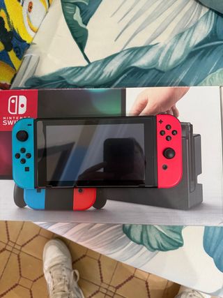 Nintendo Switch en muy buen estado y con funcionamiento perfecto. La consola ha sido usada con cuidado y todo funciona correctamente. No tiene problemas ni fallos. Incluye: • Consola Nintendo Switch • Joy-Con izquierdo azul y derecho rojo • Base de carga • Adaptadores para los Joy-Con No incluye la caja original. Ideal para jugar tanto en modo portátil como en la televisión. Entrega en mano o envío a través de Wallapop. Cualquier duda, escríbeme sin compromiso.