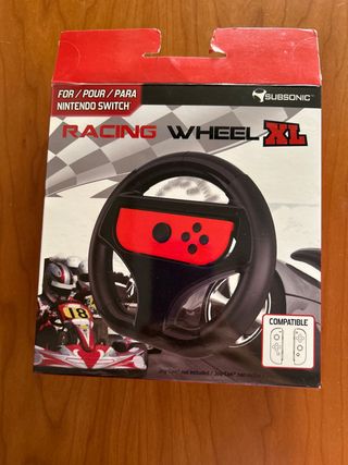 Volante de carreras XL para Nintendo Switch. - Diseñado para una experiencia de juego inmersiva. - Compatible con Joy-Con. - Incluye un diseño inspirado en karts y coches de carreras.