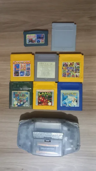 Consola portátil Game Boy Advance con varios cartuchos de juegos. - Incluye cartucho 92 IN 1. - Incluye cartucho Super Mario Land. - Incluye cartucho Pokemon. - Incluye cartucho Super Mario Bros. - Incluye cartucho Super 11 in 1 (A).