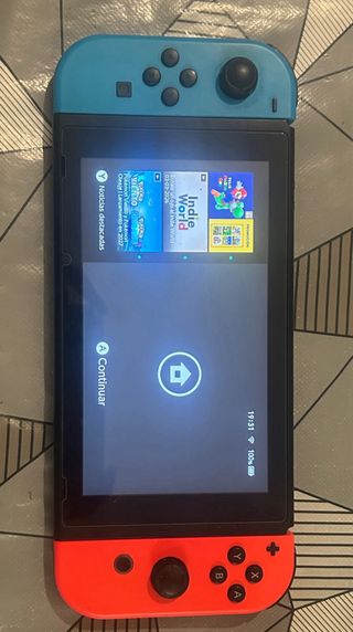 Consola Nintendo Switch con accesorios. - Incluye base de carga. - Mando Joy-Con rojo. - Mando Joy-Con azul. - Mando Joy-Con naranja. - Mando Joy-Con morado. - Cable de carga. - Mando Joy-Con azul no oficial - Mando Joy-Con rojo no oficial - Fundas para 2 Joy-Con - El mando que te viene con la nintendo para juntar los dos Joy-con - Maletin para llevar la consola oficial de nintendo - Pokémon tournament DX El mando rojo oficial tiene drift y el mando rojo no oficial no le va el r1 los demas funcionan perfectamente y los que van acoplados a la consola van perfectos. Solo entrega en mano
