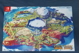 Mapa promocional de los videojuegos Pokémon Escarlata y Pokémon Púrpura que te daban con la reserva de los juegos. Tiene dos manchas pequeñas en una cara del mapa. #pokemon
