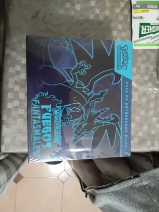 Caja de Entrenador Élite de la expansión Fuegos Fantasmales de Pokémon. - Contiene cartas Pokémon. - Diseño con temática de fuego y fantasmas.