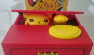 Hucha con diseño de Pokémon, Ideal para niños o en tiendas para los tips que dejan los clientes. - Diseño Pikachu Funcionamiento: Debes ponerle 2 pilas AA, lo pones en ON, aprietas el boton amarillo y sale el pikachu y con su mano recoge la monedas y la almacena en su interior. Se recoge en Poblenou.