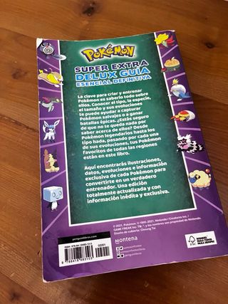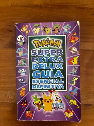 Guía completa de Pokémon con información detallada. - Título: Super Extra Deluxe Guía Esencial Definitiva. - Contiene ilustraciones de varios Pokémon.