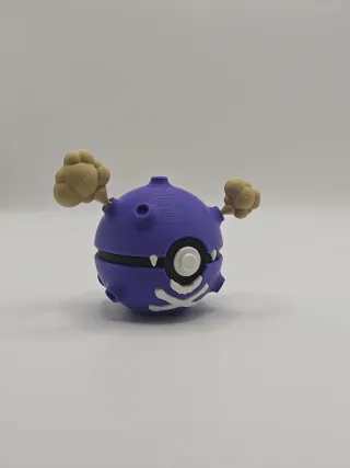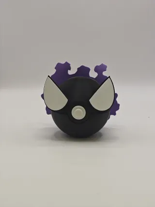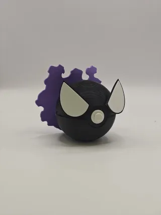Figura de la PokeBall con diseño de Gastly. - Color principal: negro. - Detalles en blanco y morado. - Diseño inspirado en Pokémon.