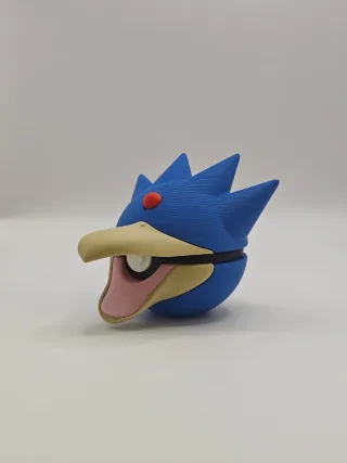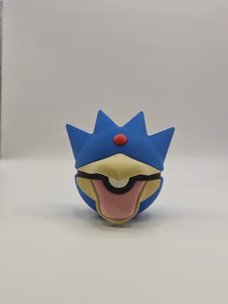Figura coleccionable de la PokeBall con diseño de Goldduck. - Diseño inspirado en Pokémon. - Colores azul, amarillo y rojo.