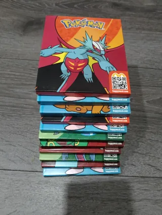Lote de 11 cajas selladas de Pokemon. - Incluye varias cajas con diferentes diseños de Pokemon. - Cada caja está sellada y en perfecto estado.