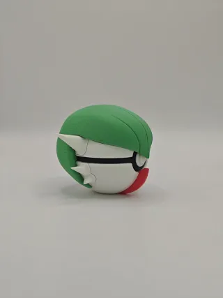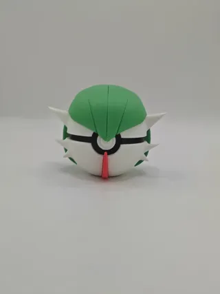 Figura coleccionable de la Pokéball con diseño de Gardevoir. Fabricada en impresora 3D - Diseño inspirado en Pokémon. - Colores verde, blanco y negro.