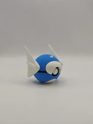 Figura de PokeBall con diseño inspirado en Dratini. - Color azul y blanco. - Detalles en negro y blanco.