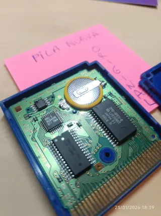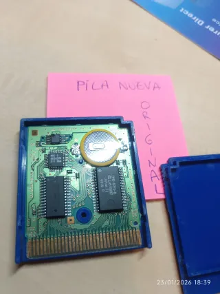 Vendo cartucho original de Pokémon Verde Hoja para Game Boy Advance (GBA), versión PAL-ESP (AGB-BPGS-ESP). Es el cartucho que conservo desde mi infancia, no es una reproducción ni reedición. La etiqueta está entera en buen estado aunque superficialmente rayada, con brillo metálico visible, y el tornillo trasero es triwing original. En la parte posterior se puede leer el relieve “MODEL NO. AGB-002 / MADE IN JAPAN”. El juego funciona perfectamente y guarda las partidas sin problema (ver fotos). En las últimas fotos se puede ver el juego funcionando en una Nintendo DS, el juego pasa la pantalla de verificación oficial de Nintendo.