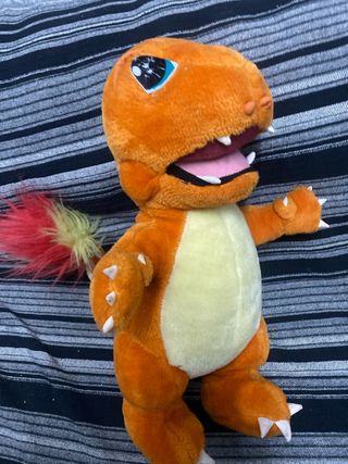 Peluche grande del personaje Charizard de Pokémon. Este adorable peluche es perfecto para los fans de la saga. - Color naranja vibrante. - Detalles bordados. - Cola con diseño característico.licencia oficial nintendo