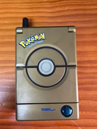 Consola portátil temática de Pokémon. - Diseño en color dorado. - funciona bien - artículo de coleccionista - Para volver a tu infancia