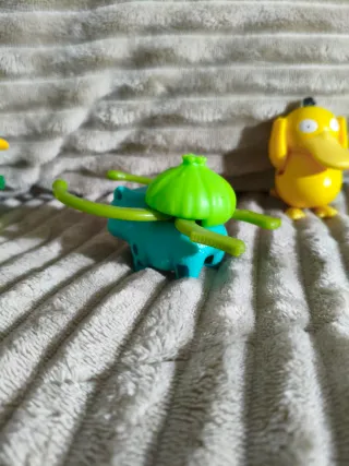Lote de tres figuras de Pokémon. - Figura de Bulbasaur. - Figura de Psyduck. - Figura de Rowlet.