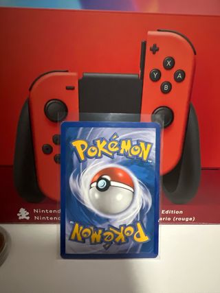 Consola Nintendo Switch con un diseño especial inspirado en Pokémon. En perfecto estado. - Incluye dos Joy-Con, uno morado y otro rojo. - Base de carga para Joy-Con. - Cargador de corriente. - Estuche de transporte. - Funda protectora con diseño. - Correa para Joy-Con.
