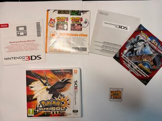 Cartucho del videojuego Pokémon UltraSol para Nintendo 3DS. - Juego de rol. - Incluye manuales y folletos informativos.