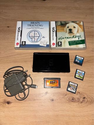 Nintendo DS Lite Negra con cargador original y juegos. - Nintendo DS Lite - Cargador Original - Pokemon Platino - Super Mario - Nintendogs - Brain Training - Sudoku - Tony Hawk's (GBA)