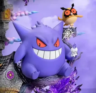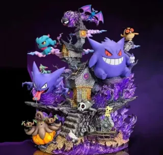Impresionante diorama de Pokémon con Gengar como protagonista, acompañado de otros personajes icónicos del mundo Pokémon. - Diseño detallado de casa embrujada. - Figuras de Gengar, Haunter, Gastly, Zubat, Misdreavus, Murkrow y Pumpkaboo. - Efectos de energía púrpura. - Base temática con escaleras y detalles. - Ideal para coleccionistas de Pokémon.