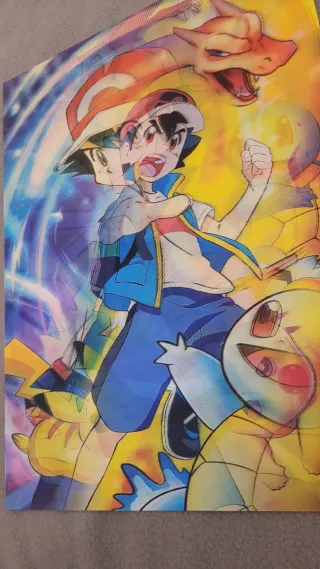 Póster 3D con personajes de Pokémon. - Efecto tridimensional con tres diseños que cambian según el ángulo. - Más modelos disponibles. - Medidas: 30×40cm