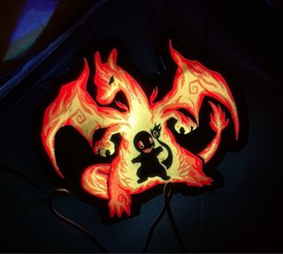 Esta lámpara LED Impresa en 3D presenta un diseño de Charizard y Charmander, ideal para los fans de Pokémon. La iluminación crea un efecto llamativo. - Diseño de Charizard y Charmander. - Iluminación LED. - Impresa en 3D.