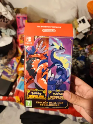 Edición dual de Pokémon Scarlet y Pokémon Violet para Nintendo Switch, presentada en una caja Steelbook. - Incluye Pokémon Scarlet. - Incluye Pokémon Violet. - Caja Steelbook coleccionable. Uno de ellos solo la caja y el otro sin abrir ,.más la caja metálica y todo lo que se ve Escucho propuestas serias