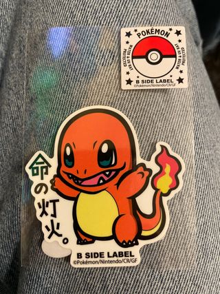 Pegatina de Charmander de la marca B Side Label, comprada en Japón. Presenta un diseño vibrante y detallado del popular Pokémon. - Diseño de Charmander. - Marca B Side Label. - Comprada en Japón. - Solo se vende en Japón. - Texto en japonés: 命の灯火 (Inochi no Tomoshibi - Llama de la vida). - Incluye otra pequeña pegatina de Pokémon con el logo.
