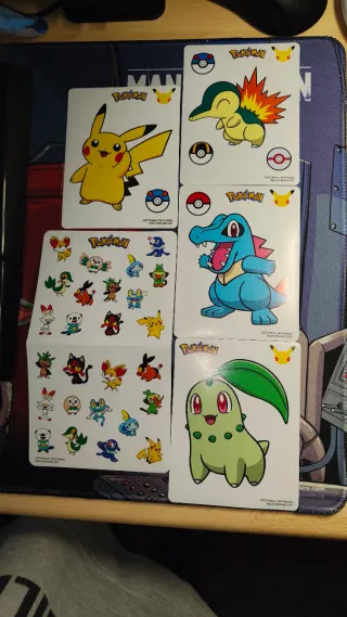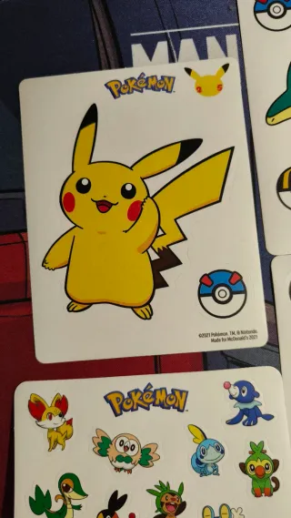 Colección de pegatinas de Pokémon en colaboración con McDonald's. Incluye varios personajes populares de Pokémon como Pikachu,litten,fennekin,snivy etc
