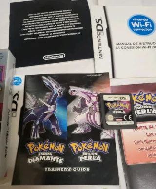 Juego de Pokémon Perla para Nintendo DS. Incluye manuales y carátula. Absolutamente original y completo con los cinco panfletos originales de la época En perfecto estado - Juego Pokémon Perla. - Manual de instrucciones Nintendo DS. - Manual de instrucciones Wi-Fi Connection. - Guía del entrenador Pokémon Diamante y Perla. - Carátula de Pokémon Perla.