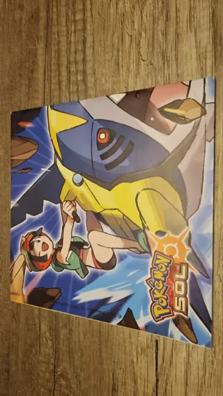 Póster promocional de los videojuegos Pokémon Luna y Pokémon Sol. A doble cara , original ..buen estado. - Ilustración con personajes y Pokémon. - Diseño vibrante y colorido.