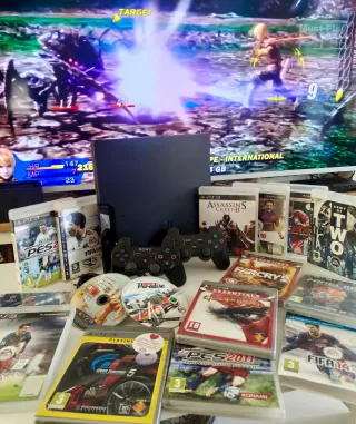 Mega lote Consola PlayStation 3 slim, con dos mandos, una gran colección de 16 videojuegos, cable de alimentación, cable de carga de mandos y cable HDMI. Completísima, llegar y jugar! No se vende por separado. Vendedor serio con cientos de valoraciones positivas por parte de mis clientes. Ellos son mi mejor aval. Las fotos son parte de la descripción. Envíos en 24/48 horas muy bien protegidos. Más juegos y gaming en mi perfil.