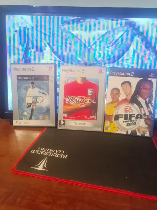 Pack de consola PlayStation 2 con accesorios y juegos. - Consola PlayStation 2 negra. - Memory card negra. - Dos mandos de control. - Juego FIFA Football 2003. - Juego Pro Evolution Soccer 5. - Juego NBA 2K8. - Juego Pro Evolution Soccer 4. - Juego Kingdom Hearts. Se vende todo junto. Vendedor serio con cientos de valoraciones positivas por parte de mis clientes. Ellos son mi mejor aval. Las fotos son parte de la descripción. Envíos en 24/48 horas muy bien protegidos. Más juegos y gaming en mi perfil.