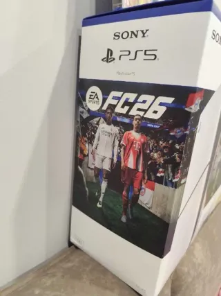 Consola PlayStation 5 Slim con disco duro de 1TB, junto con el juego FC26 y dos juegos adicionales. - Incluye consola PS5 Slim. - Disco duro de 1TB. - Juego FC26. - Dos juegos adicionales.