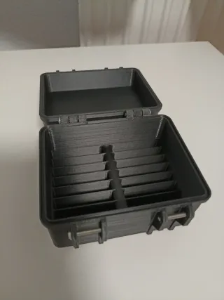 Práctica caja impresa en 3D diseñada para organizar y proteger tus tarjetas de memoria de PS2. Fabricada con materiales duraderos. - Diseño con compartimentos. - Color negro.