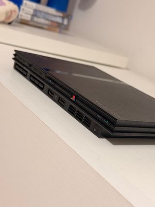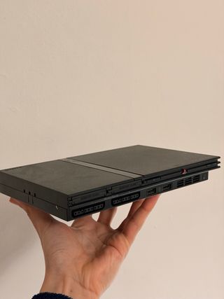 PlayStation 2 en buen estado, lista para disfrutar de tus juegos favoritos. Incluye dos mandos. - Consola PlayStation 2. - Dos mandos. - Cableado de conexión.