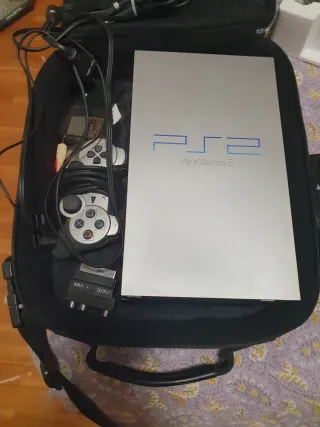 Videoconsola ps2 en perfecto estado de uso, trae sus cables lista para jugar y añorar viejos recuerdos con tu antigua consola.