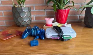 Consola clásica Playstation 1 con accesorios. - Incluye cable de carga y a television y 2 tarjetas de memoria. - Un mando de color azul. - Juego Rayman 2 unicamente el disco