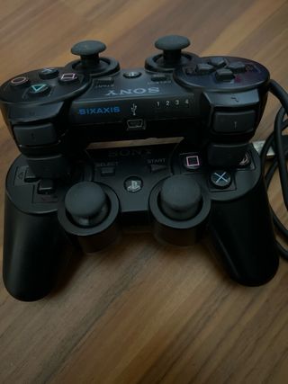 Dos mandos oficiales de PlayStation 3 de la marca Sony, junto con su cable de carga. - Incluye dos mandos dualshock sixasis - Incluye 1 cable de carga. -Muy buen estado -No se venden por separado -Precio no negociable