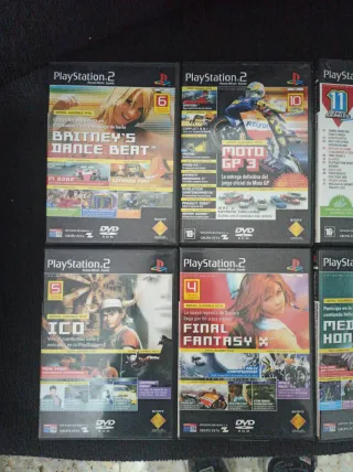 Lote de videojuegos para PlayStation 2. 20€ todos ESCUCHO OFERTAS. Ai 14 packs y en cada uno vienen entre 8 y 11 DEMOS. - Britney's Dance Beat - Moto GP 3 - ICO - Final Fantasy X -James Bond 007 -Need For Speed Underground -Scooby Doo -The Hulk -Pro Evolution Soccer 3 Y muchos más todos son Demos.