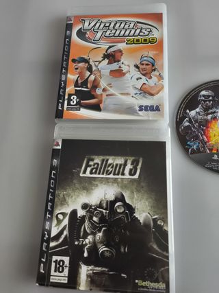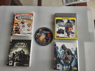 Juegos PlayStation 3 en buen estado. El pack incluye cinco juegos: - Virtua Tennis 2009, - Battlefield Bad Company 2 - Battlefield 3 - Fallout 3 - Assassin's Creed Están en buen estado. - Perfectos para jugar y disfrutar.