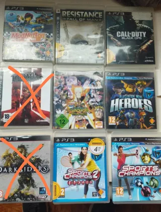 Se venden 14 juegos para PlayStation 3 en buen estado. - Incluyen títulos como Call of Duty 4: Modern Warfare, Call of Duty: Black Ops, Call of Duty: Black Ops II, Call of Duty: Modern Warfare 3, Call of Duty: World at War, Grand Theft Auto V, LittleBigPlanet Karting, Minecraft: Playstation 3 Edition, PES 2008, PES 2012, Ratchet & Clank: Full Frontal Assault, Star Wars: The Force Unleashed y WWE SmackDown vs. Raw 2009. - Algunos juegos presentan leves señales de uso. -Cada juego son 5 euros