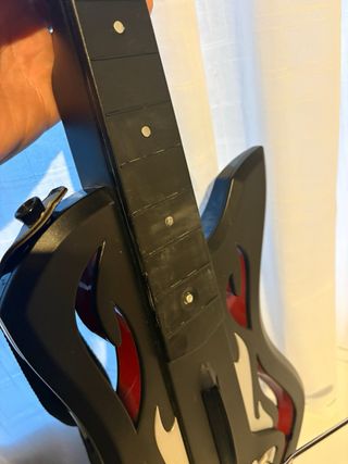 Guitarra para Guitar Hero Warriors of Rock en PlayStation 3 El departamento de las pilas tiene mal aspecto, pero funciona perfectamente. - No tiene Receptor Usb - Incluye correa